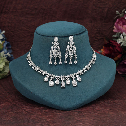 Silver Color American Diamond Necklace Set (CZN1019SLV)