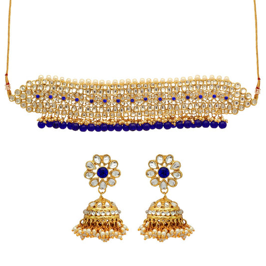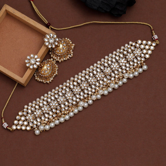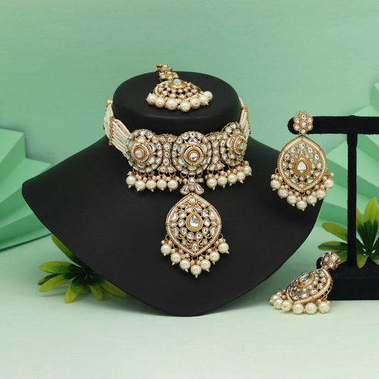 White Color Choker Kundan Necklace Set For Elegant Bridal Ensemble