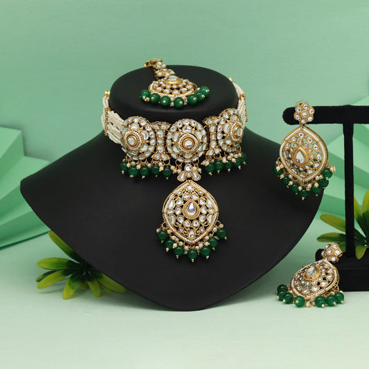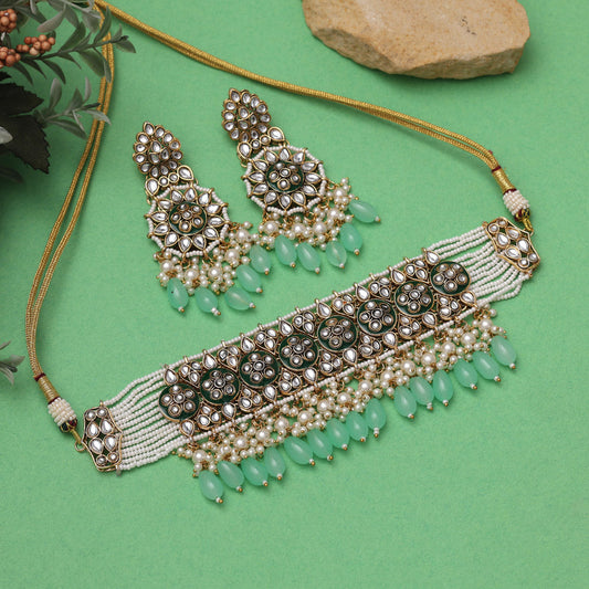 Pista Green Color Choker Kundan Necklace Set (KN1445PGRN)