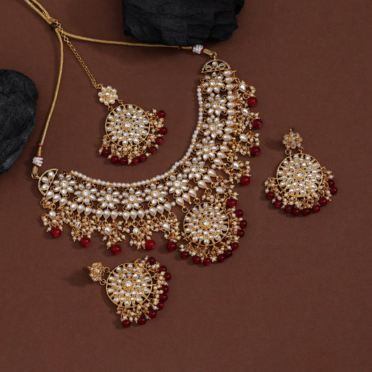 Maroon Color Kundan Necklace Set (KN858MRN)