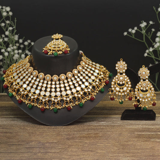 Red Color Kundan Mirror Necklaces Set (MRN119RED)