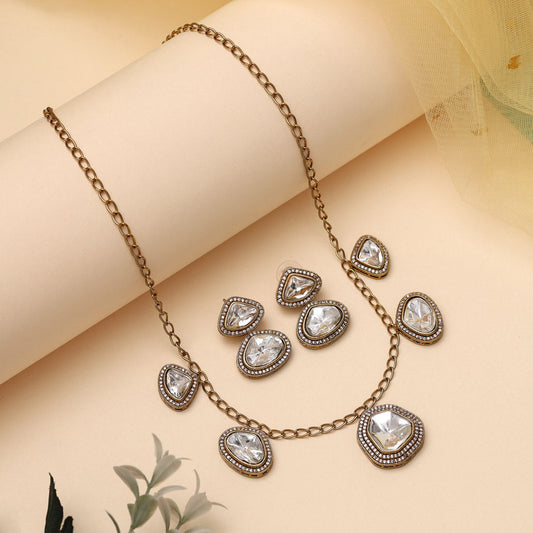 White Color American Diamond Necklace Set With High-Class Sparkle And Polish