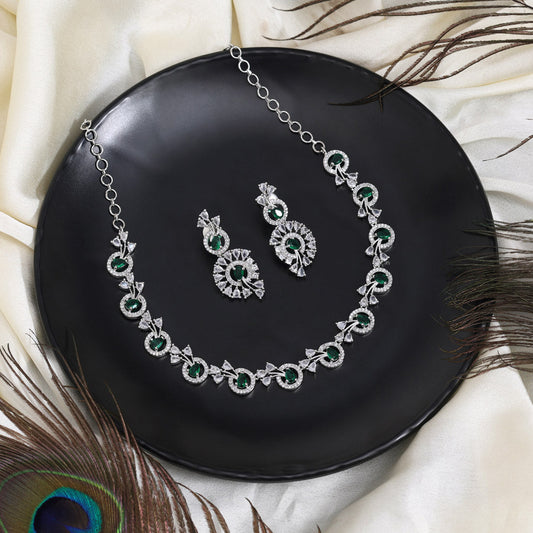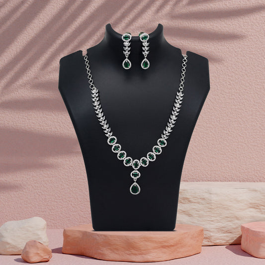 Green Color American Diamond Necklace Set (CZN1032GRN)