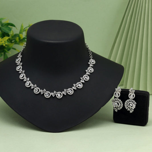 Silver Color American Diamond Necklace Set (CZN1022SLV)