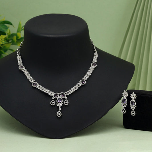 Purple Color American Diamond Necklace Set (CZN1023PRP)