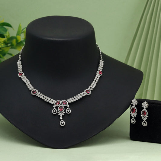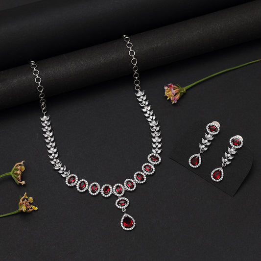 Red Color American Diamond Necklace Set (CZN1032RED)
