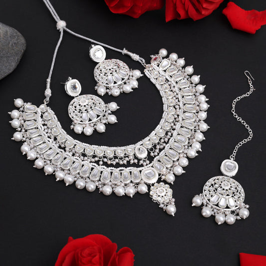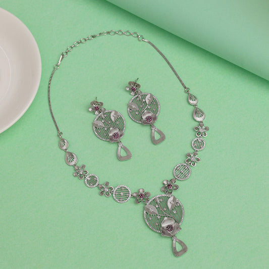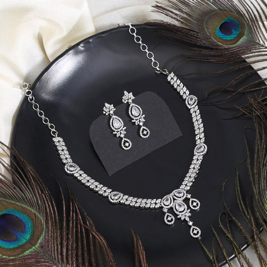 Silver Color American Diamond Necklace Set (CZN1032SLV)