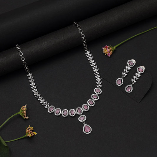 Pink Color American Diamond Necklace Set (CZN1032PNK)
