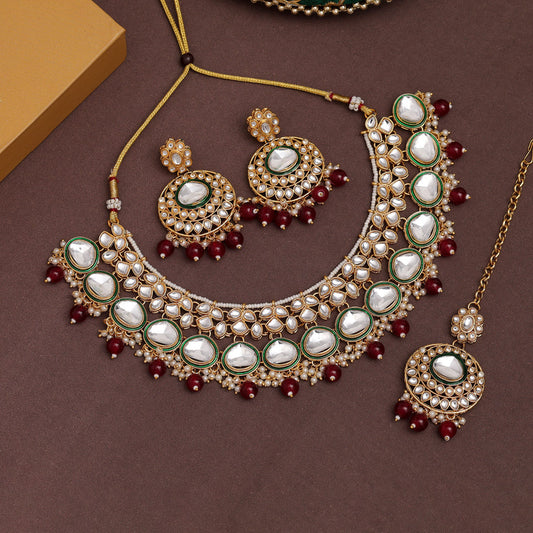 Maroon Color Kundan Necklace Set (KN1415MRN)