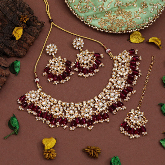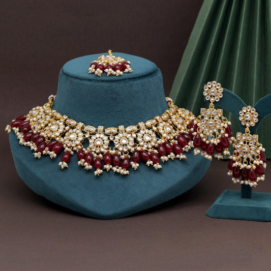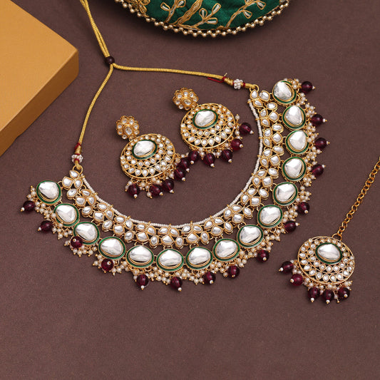Maroon Color Kundan Necklace Set (KN1417MRN)