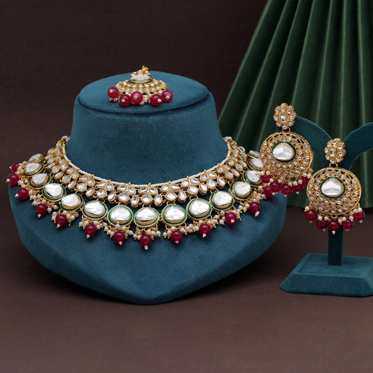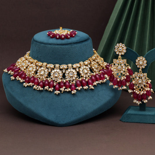 Rani Color Choker Kundan Necklace Set (KN1422RNI)