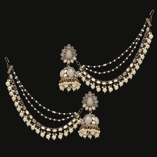 White Color Mirror Kundan Earrings With Maang Tikka (MTKE470WHT)