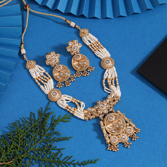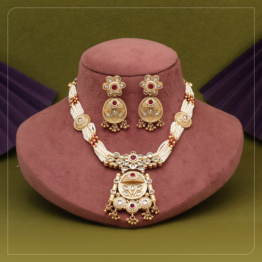 Gold Color Matte Gold Rajwadi Temple Necklace Set