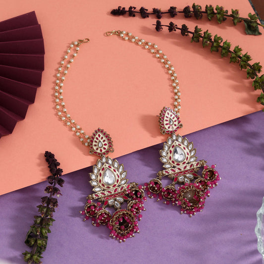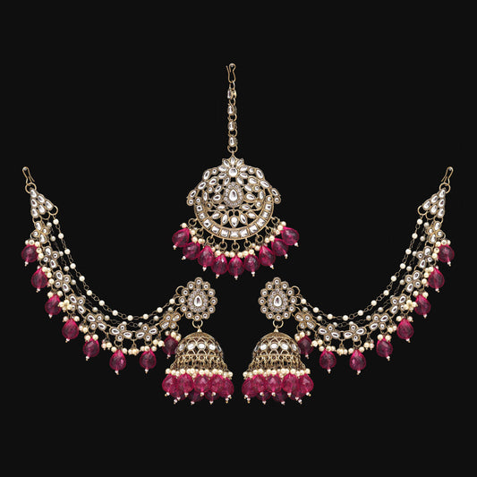 Rani Color Kundan Earrings With Maang Tikka (KDTE560RNI)