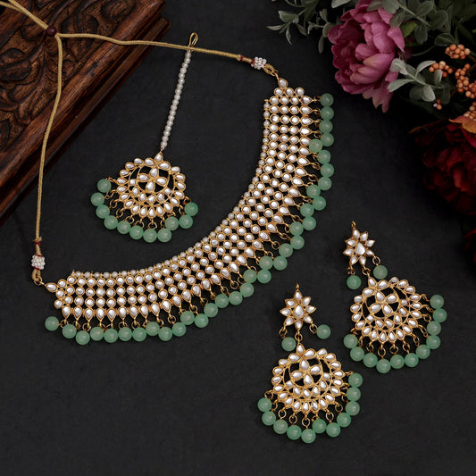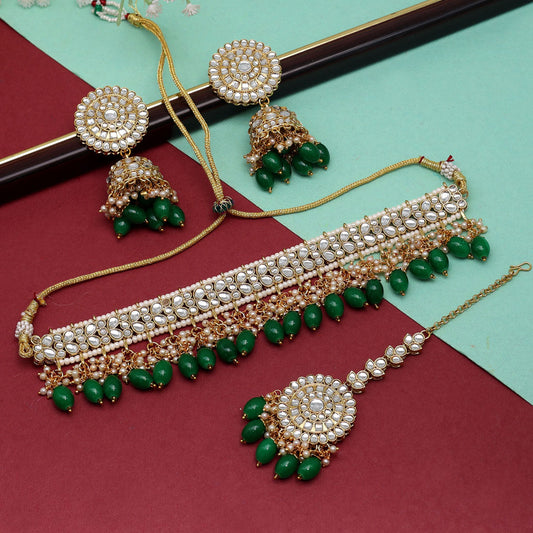 Green Color Choker Kundan Necklace Set (KN1314GRN)