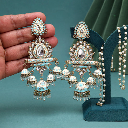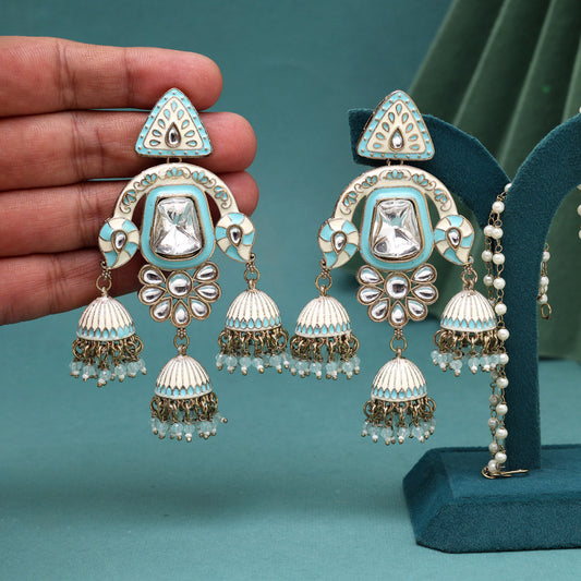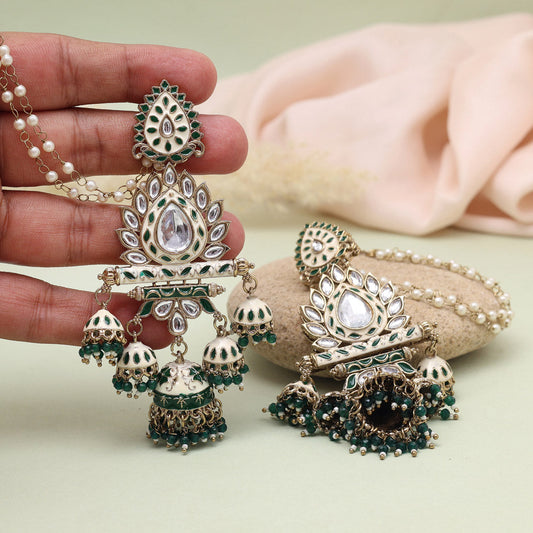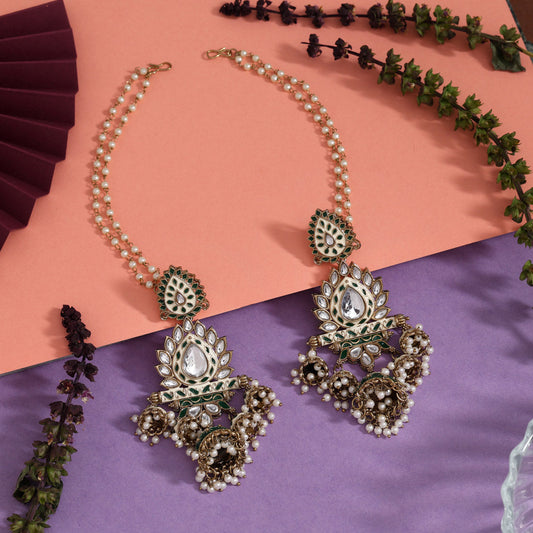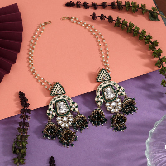Ethnic White & Green Color Kundan Meenakari Earrings