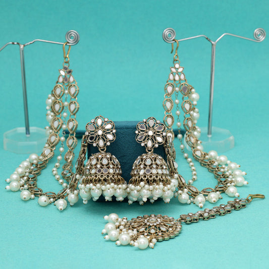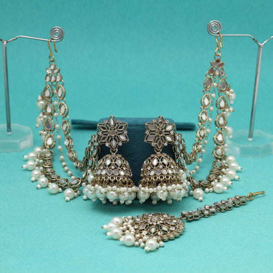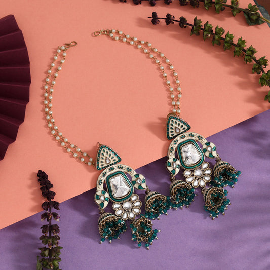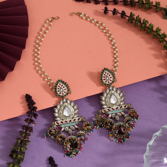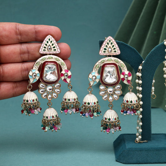 Multi Color Kundan Earrings With Maang Tikka (KDTE560MLT)