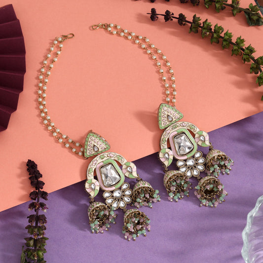 Pink & Pista Green Color Kundan Meenakari Earrings