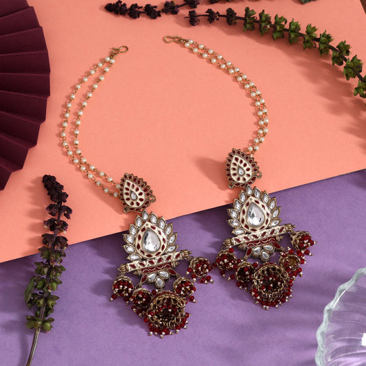 Maroon Color Kundan Earrings With Maang Tikka (KDTE560MRN)