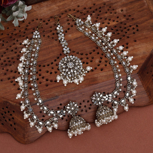 Silver Polish Unique Look Premium Handmade Jaipuri Earrings (GSE3085SLV)