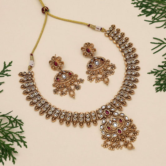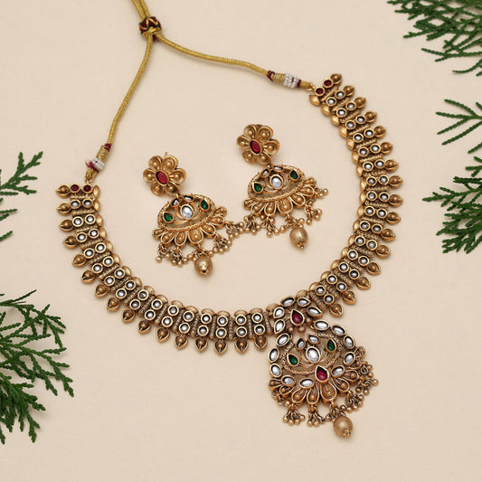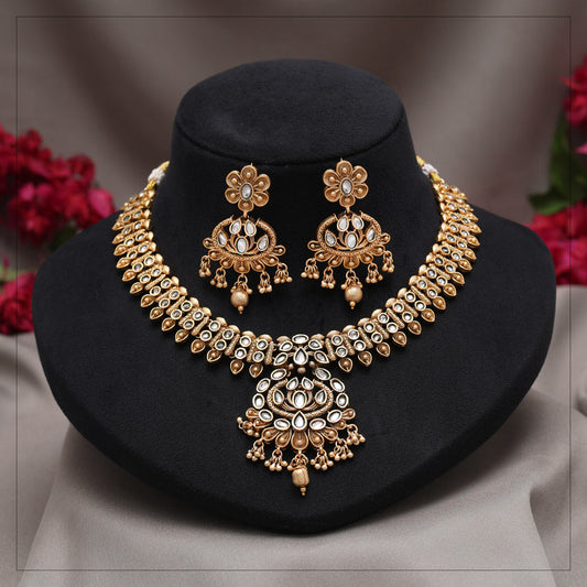 Gold Color Matte Gold Rajwadi Temple Necklace Set