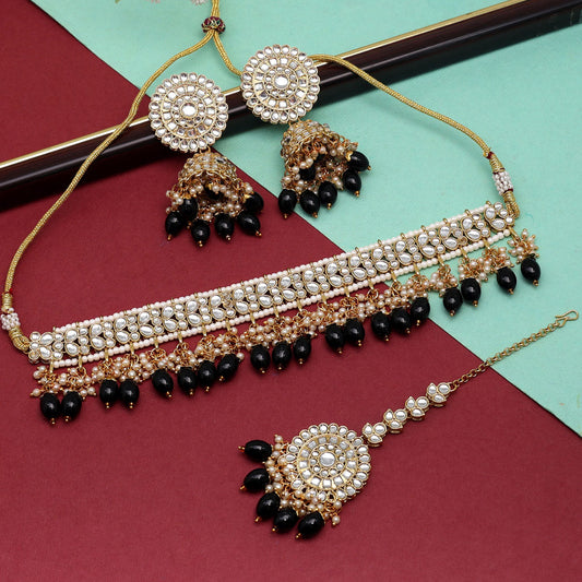 Black Color Choker Kundan Necklace Set (KN1314BLK)