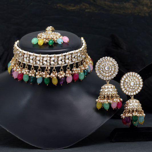 Multi Color Choker Kundan Necklace Set (KN1314MLT)