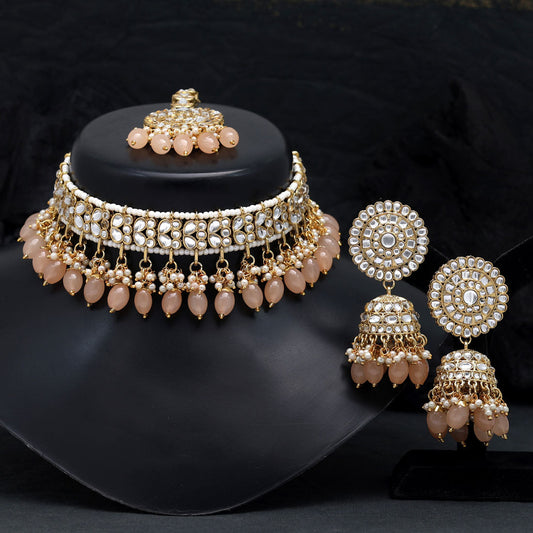Peach Color Choker Kundan Necklace Set (KN1314PCH)