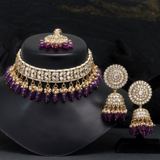 Purple Color Choker Kundan Necklace Set (KN1314PRP)