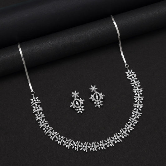 Silver Color American Diamond Necklaces Set (CZN1036SLV)