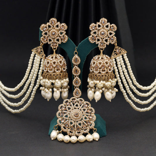 White Color Pakistani Kundan Earrings With Maang Tikka