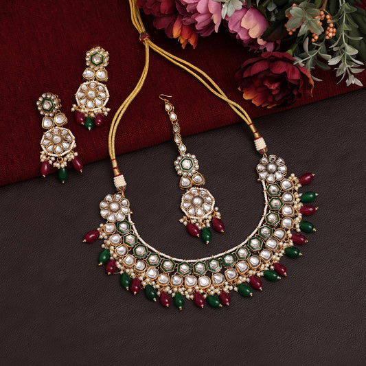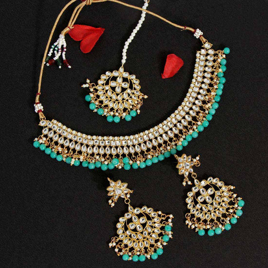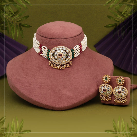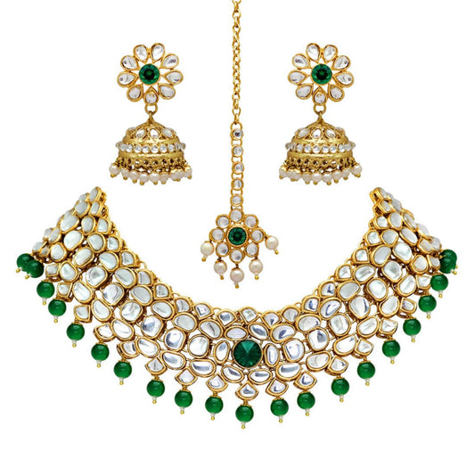 Green Color Choker Kundan Necklace Set (KN130GRN)