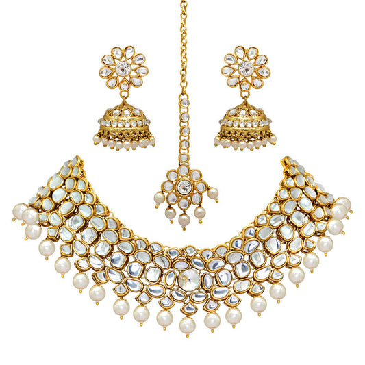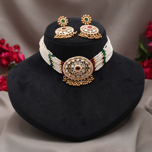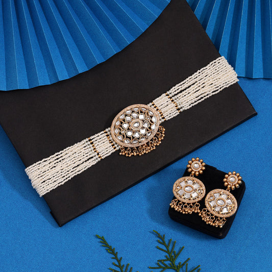 White Color Choker Kundan Necklace Set (KN1451WHT)