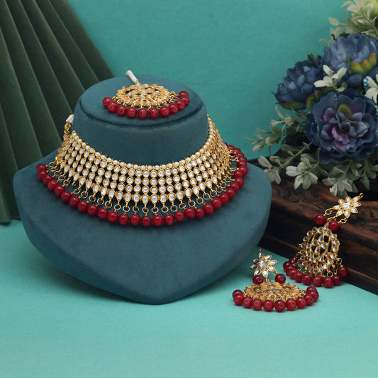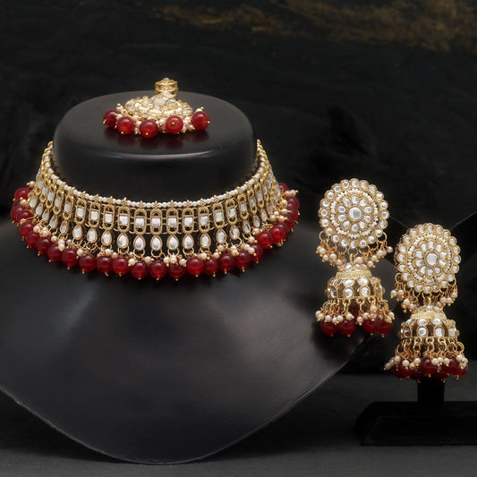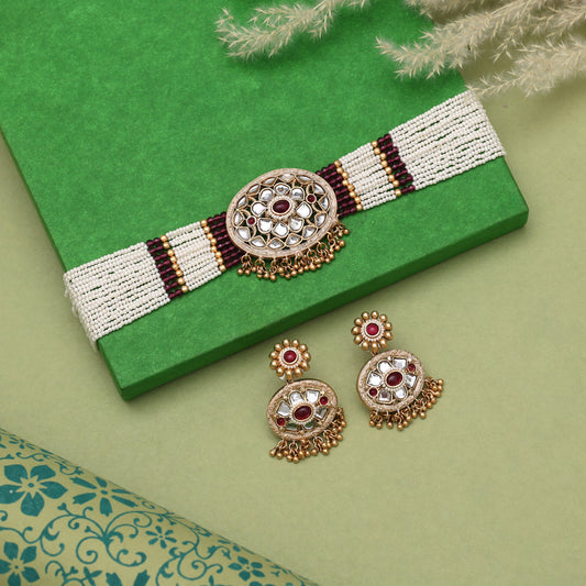 Maroon Color Choker Kundan Necklace Set (KN1312MRN)