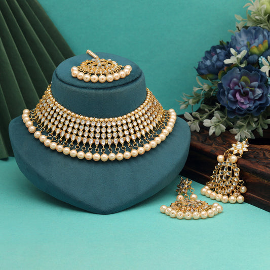 White Color Choker Kundan Necklace Set (KN130WHT)
