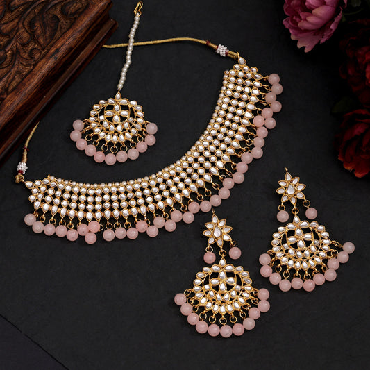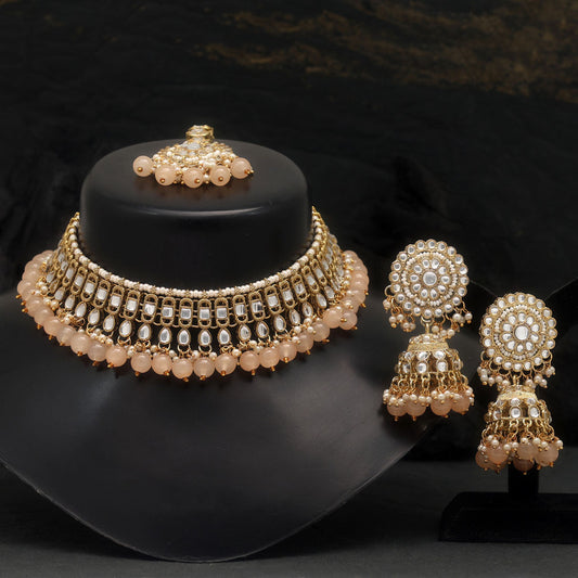 Peach Color Choker Kundan Necklace Set (KN1312PCH)