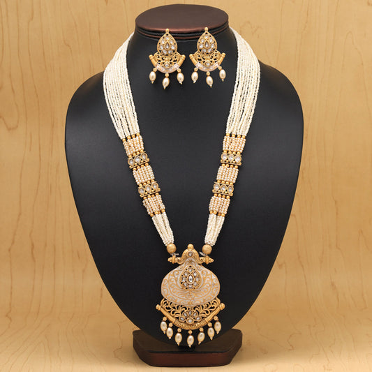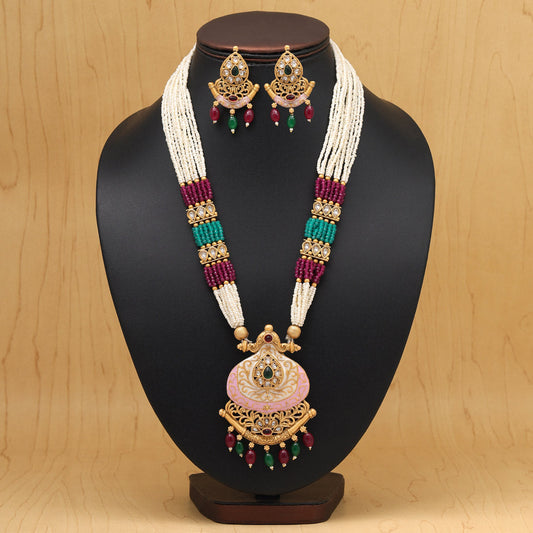 Gold Color Long Meenakari Necklace Set (MKN591GLD)