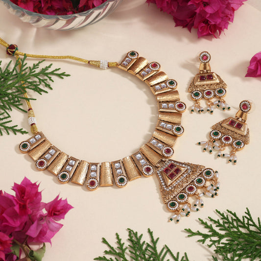 Gold Color Choker Matte Gold Rajwadi Temple Necklace Set