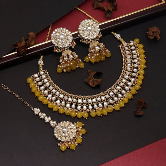 Yellow Color Choker Kundan Necklace Set (KN1312YLW)