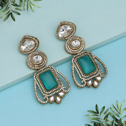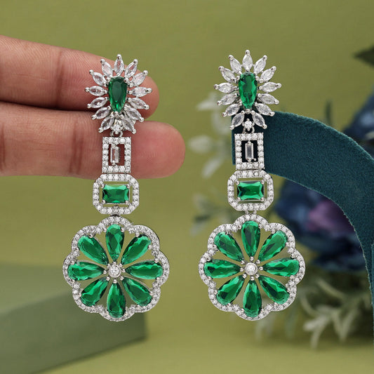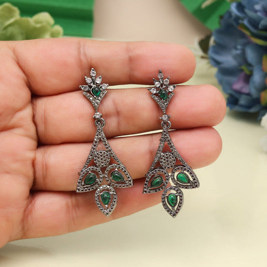 Green Color American Diamond Earrings