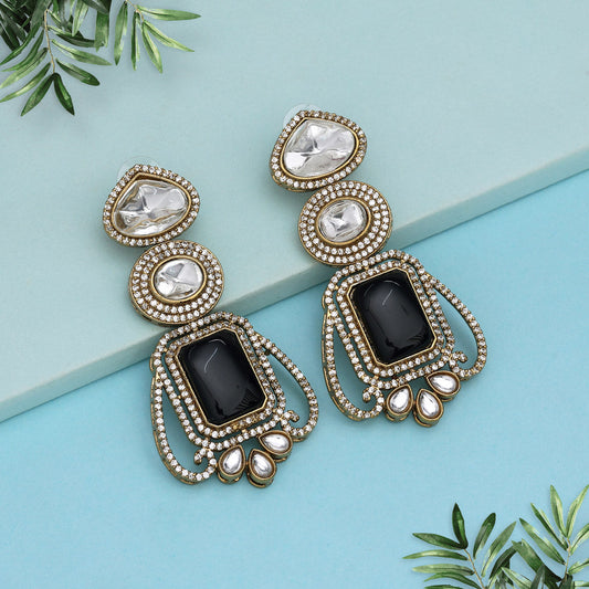 Black Color Royal Look Handmade Jaipur Earrings On Brass Metal With Moissanite Kundan And Monalisa Stones Studded On Apala Polish (ADE610BLK)