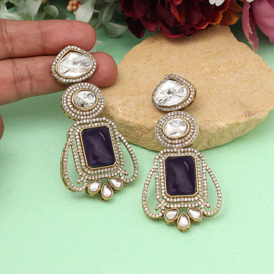 Light Purple Color Royal Look Handmade Jaipur Earrings On Brass Metal With Moissanite Kundan And Monalisa Stones Studded On Apala Polish (ADE610LPRP)