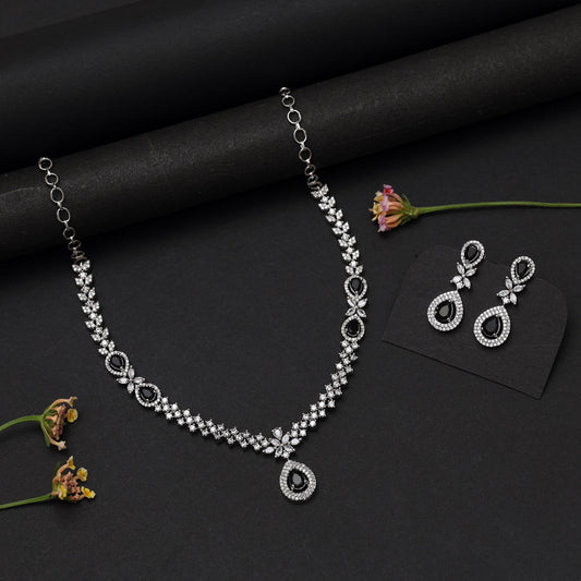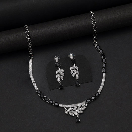 Black Color American Diamond Necklace Set (CZN1034BLK)