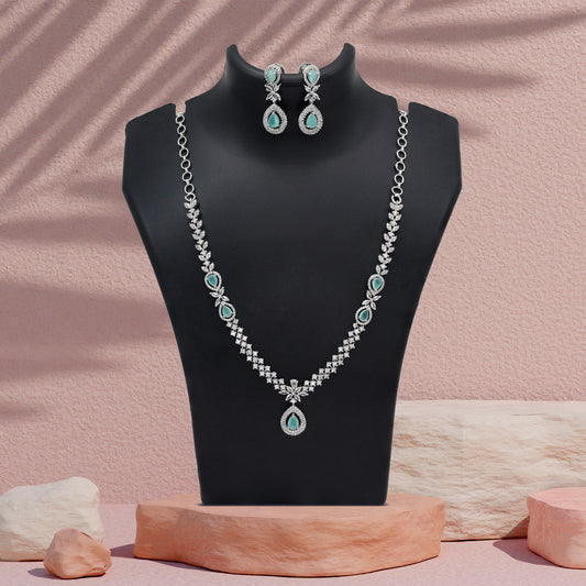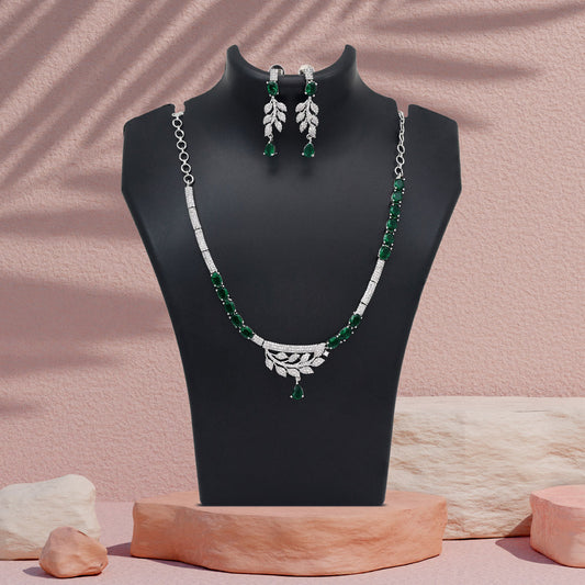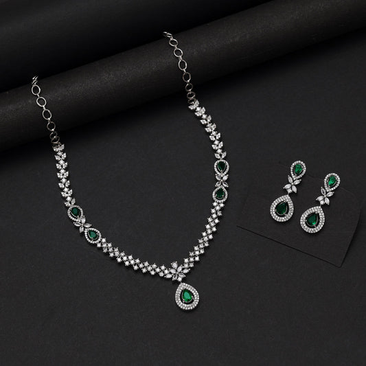 Green Color American Diamond Necklace Set (CZN1034GRN)