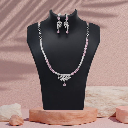 Pink Color American Diamond Necklace Set (CZN1029PNK)