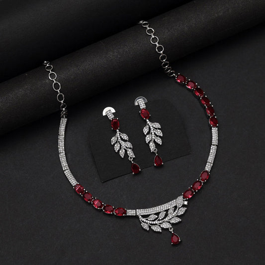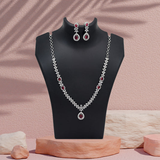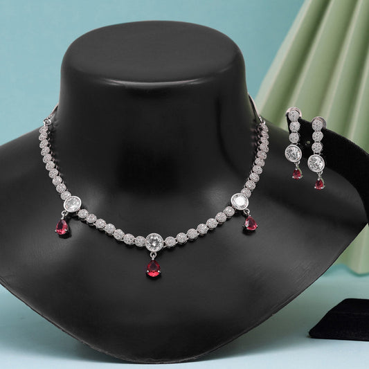 Ruby Color American Diamond Necklace Set (CZN1034RUBY)