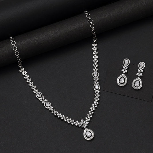 Silver Color American Diamond Necklace Set (CZN1034SLV)