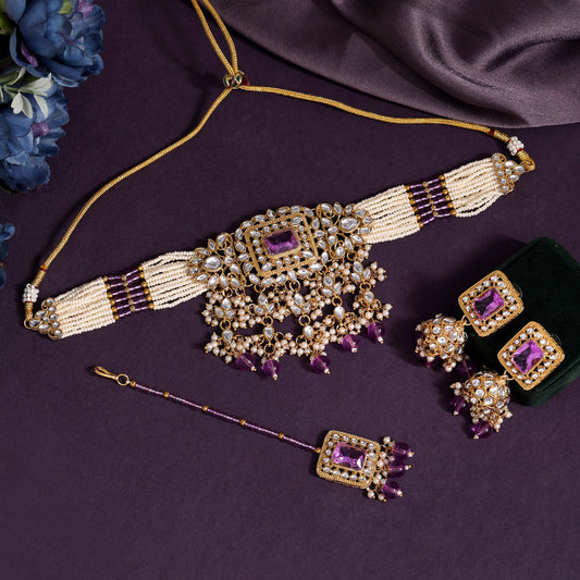 Light Purple Color Choker Kundan Necklace Set (KN1357LPRP)