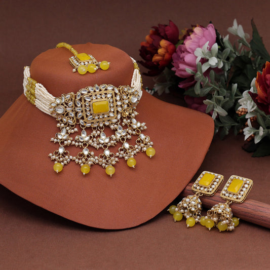 Yellow Color Choker Kundan Necklace Set (KN1357YLW)