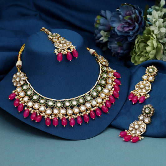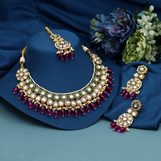 Dark Pink Color Meena Work Kundan Necklace Set (KN1392DPNK)